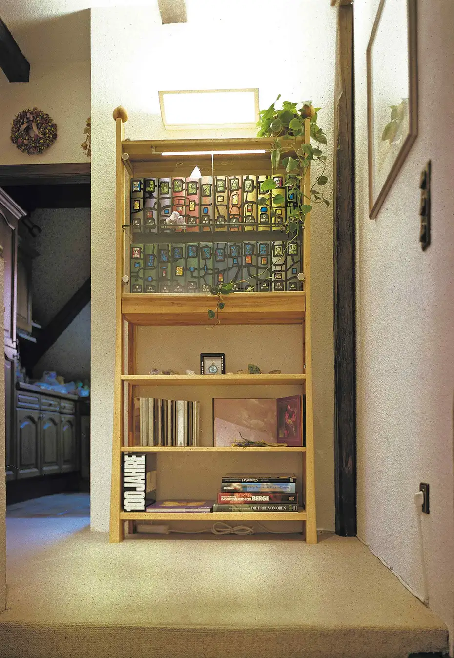 Der Fachboden auf Augenhöhe ist für ganz besondere Lieblingsbücher und nur einseitig mit großer Tiefe bestückt, deshalb mit Rückwand ausgestattet
