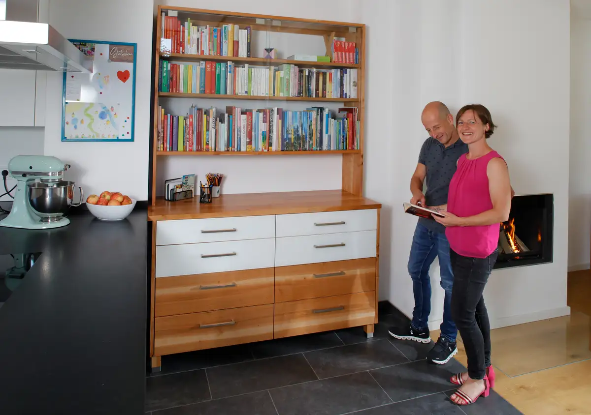 - 2. Schritt: Schon am Telefon (oder besser bei einem Termin in unserer Ausstellung) werden wir Ihre Ideen besprechen, viele Beispiele und die Werkstatt zeigen und wir rechnen auch gleich aus, was der gemeinsam entwickelte Bücherschrank kosten wird