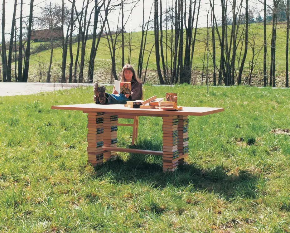 Der "Büchertisch" war 2001 unser Beitrag zur Gruppenausstellung des Hersbrucker Kunstvereins zum Thema "Aus, auf, mit Papier."