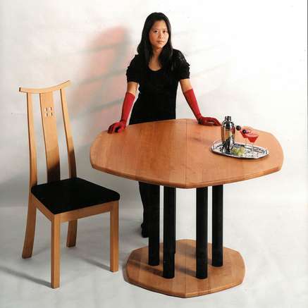 - Die Platte schwebt über den Wangen, deswegen könnten sich zusätzliche Gäste einfach dransetzen, ohne dass Beine im Weg sind