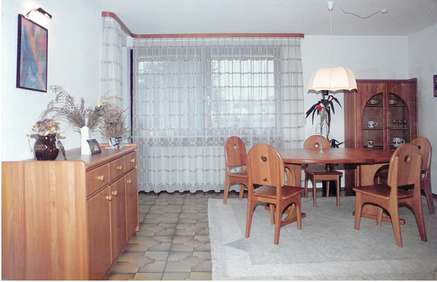 - Die 8 cm Platzbedarf unter der Tischplatte sind dank des Längseinschiebens erst weit innerhalb des Tisches, deswegen ist die Beinfreiheit außerhalb der Wangen noch ganz gut