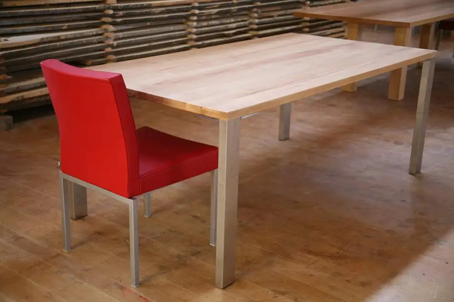Ahorn Esstisch mit leichtem Edelstahlgestell