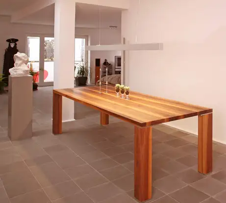 Auch in der Diagonale ein stattlicher Massivholztisch