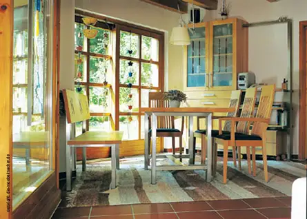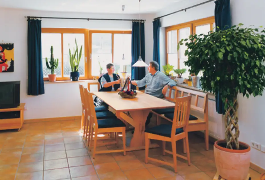 In diesem Bild der Bilderserie über die Einrichtung von Familie Auer sehen Sie den Essplatz (wenn Sie sich für andere Räume interessieren: Küche, Bad, Schlafzimmer, Wohnzimmer).