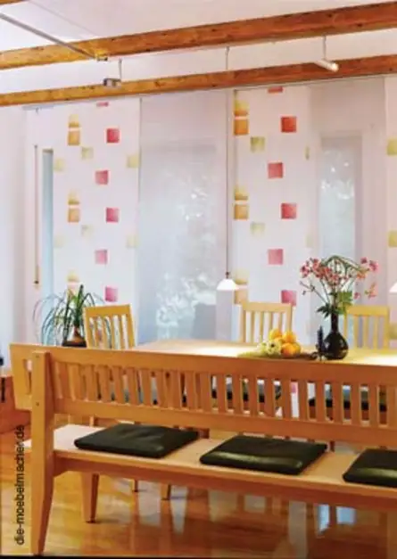 War doch naheliegend unserem Lackierer Michael Brendel vorzuschlagen, die Glasfronten des Sideboards selbst zu gestalten. So haben unsere Kunden wieder eine völlig neue Variante der Schrankfront, die man vom Schlafzimmer bis in die Küche problemlos anwenden und vor allem völlig frei gestalten kann. Zu den Stühlen "Milo" von Längle & Hagspiel entwarfen wir die passende Bank und das Sideboard in Buche mit Edelstahl und schlugen fürs Fenster die Flächenvorhänge von Ann Idstein vor (Paneelwagenanlage). Die darauf abgestimmte Beleuchtung von Sigl Licht sorgt für die Betonung des Bildes und der kunstvoll lackierten Glasfronten des Sideboards.