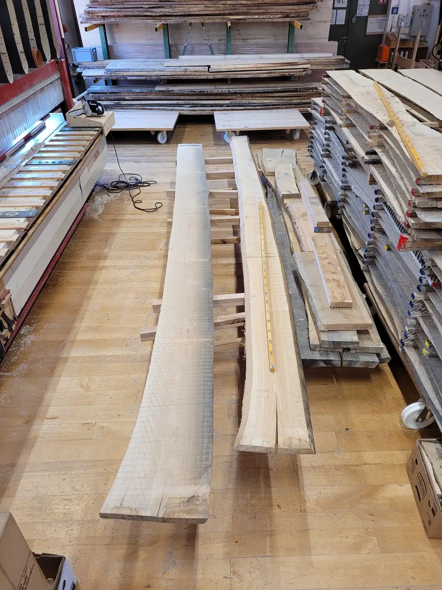 Die besäumten Bretter vor dem Hobeln im Vierseiter