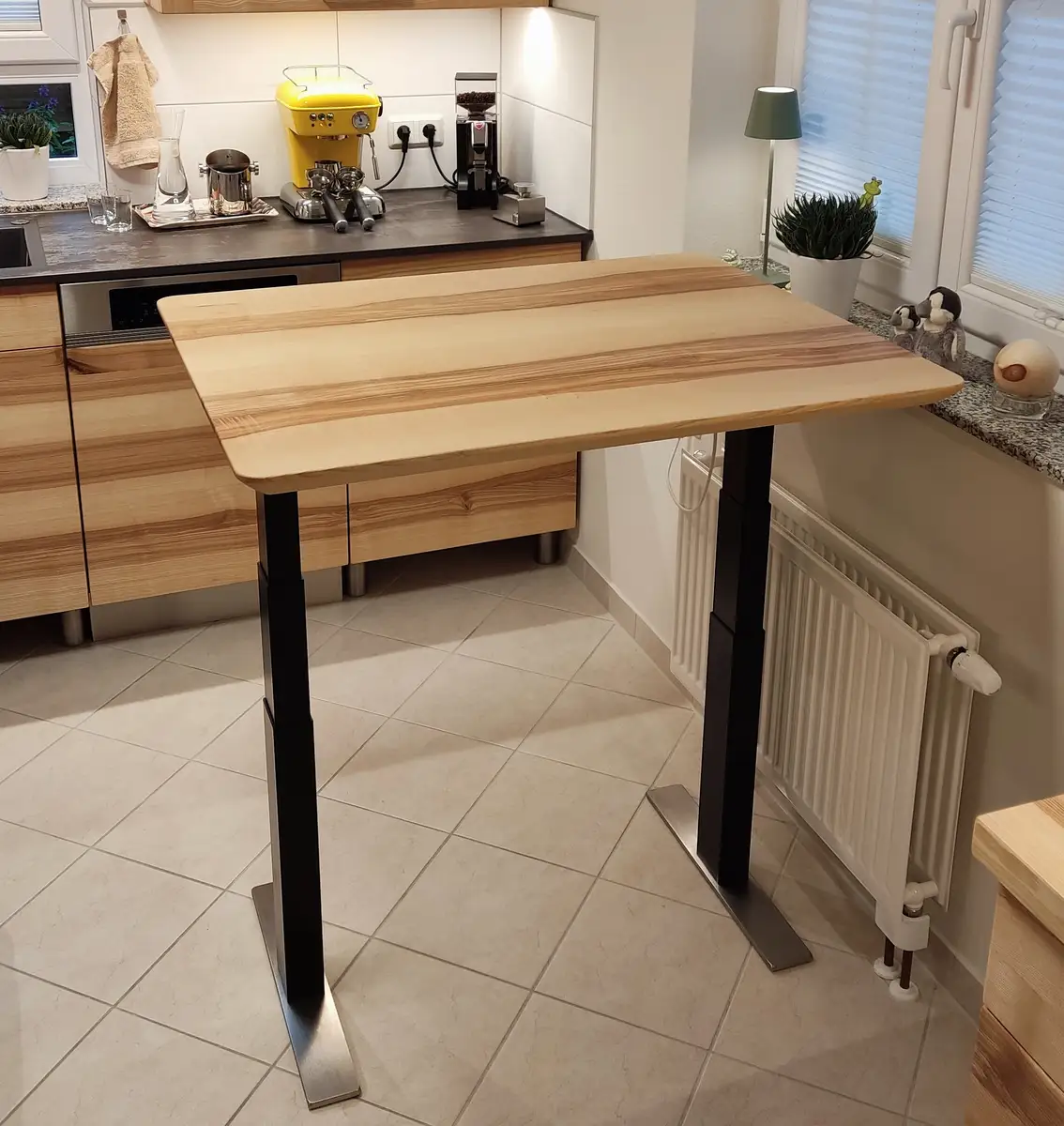 Was aussieht, wie ein höhenverstellbarer Schreibtisch ist hauptberuflich ein höhenverstellbarer Esstisch, aber er kann halt beides