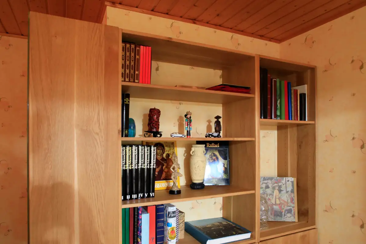 Mit Familie Müller entwarfen wir ein Wohn- Lese- und Gästezimmer mit Schlafsofa und im Gang gegenüber ein Musik- und Arbeitszimmer mit geräumigem Schreibtisch und einer Klaviertastatur am Schiebetürschrank.