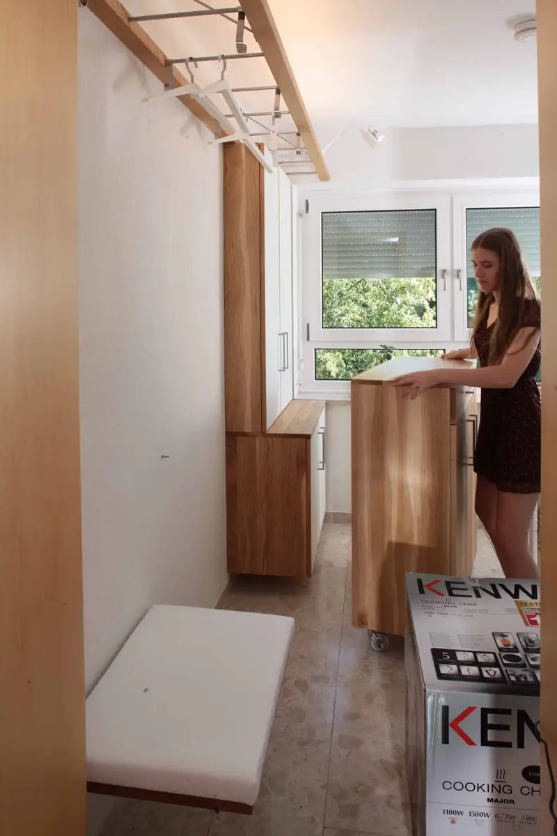 Der Tiefenversatz der Schränke ist dem Fenster verschuldet
