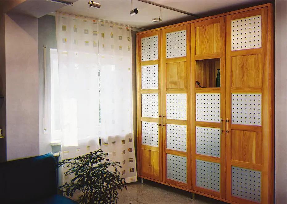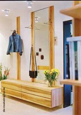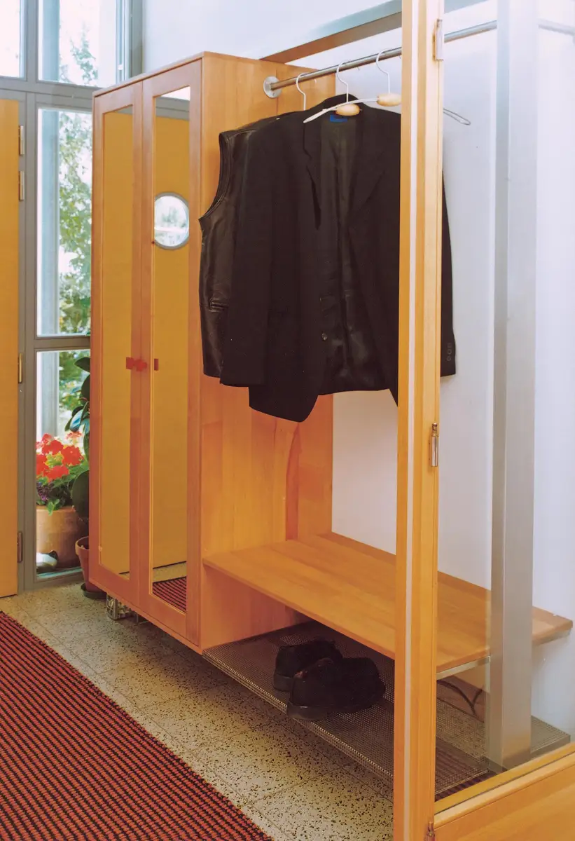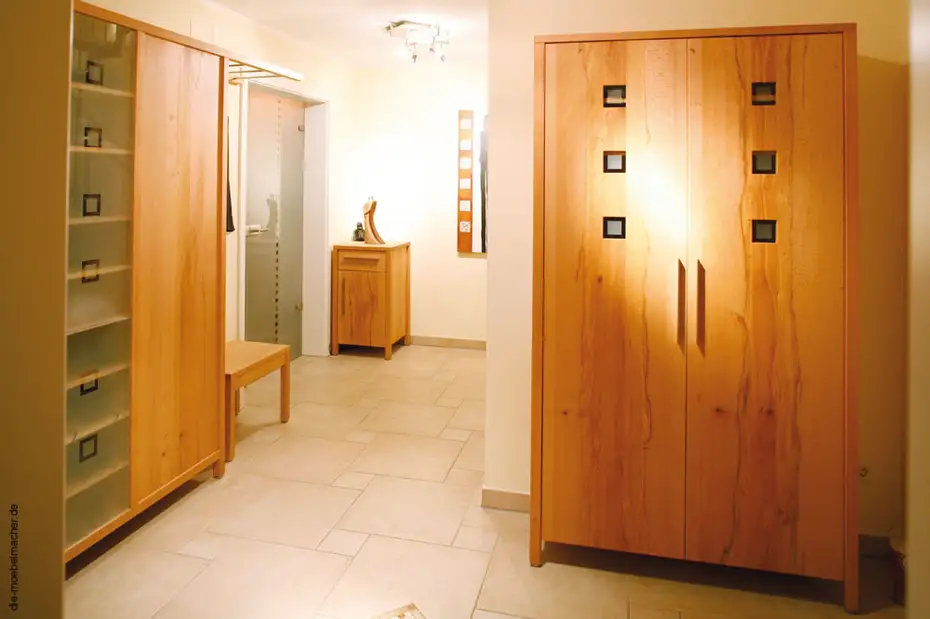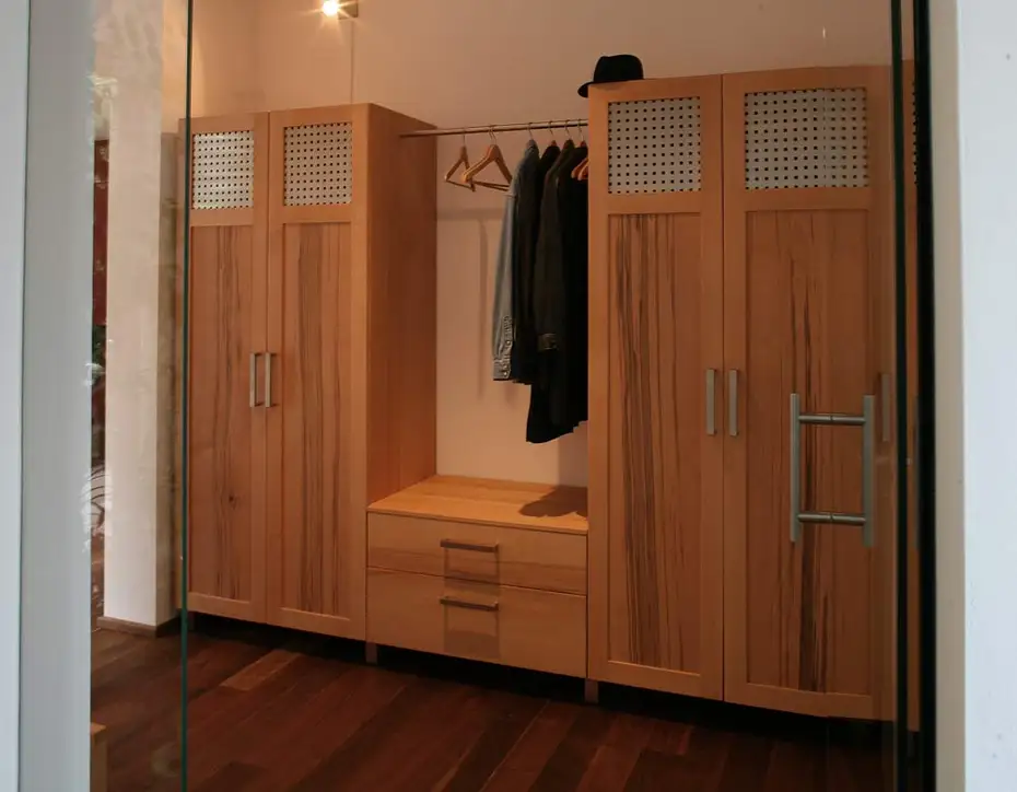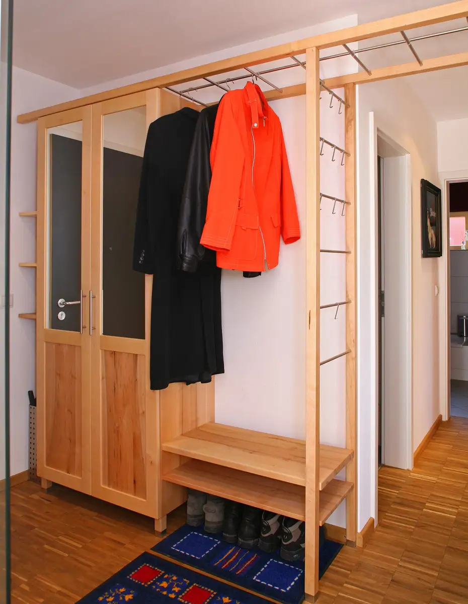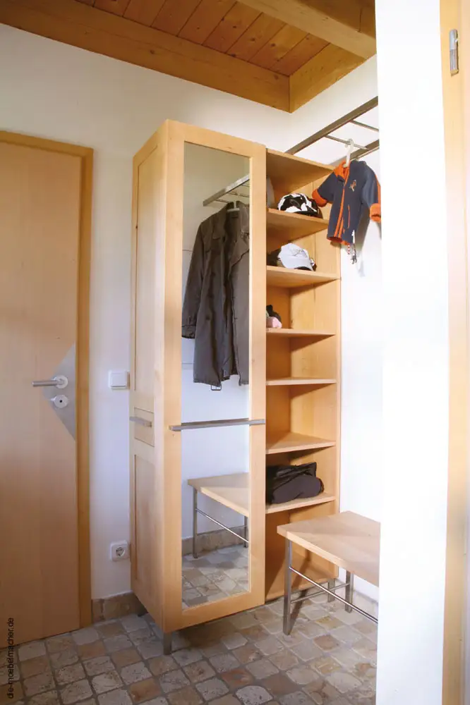Gardeobe in Buche mit Ablage, Minischubladen und Kunst