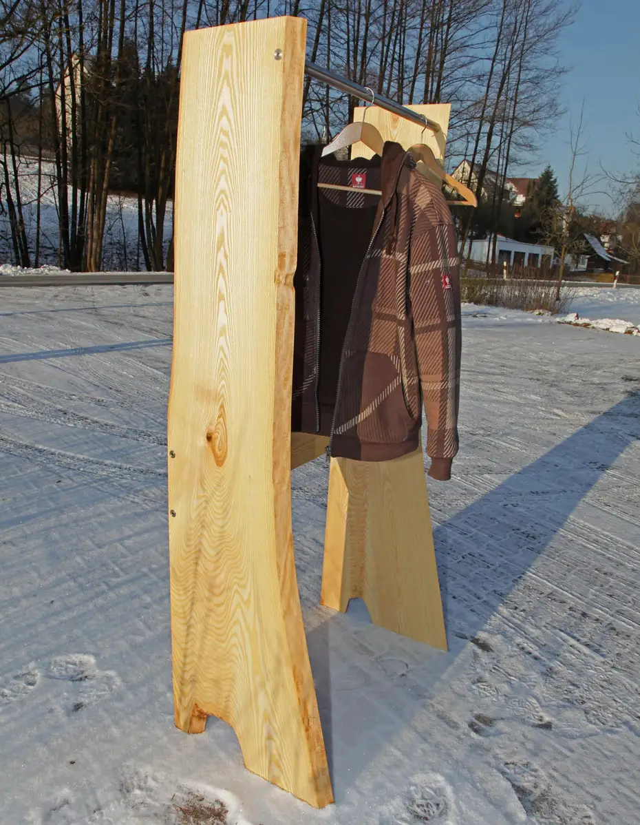 Freistehende Garderobe in Esche mit Baumkante kann aber auch in geschlossenen Räumen stehen