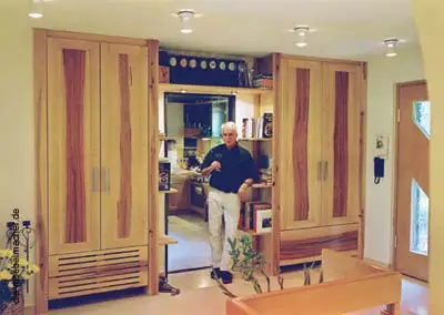 Walter Herrmann verlässt seine Garderobe aus Elsbeere nur noch ungern, hat sie sich doch vom Aschenputteldurchgang zum Empfangssalon gemausert.