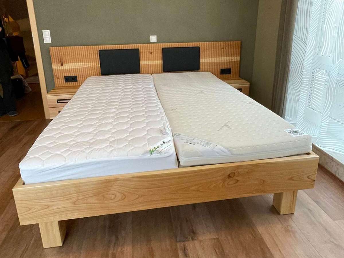 Bett mit 240 cm Breite, auf dass auch das Kind mit reinpasst, kein Problem bei unserer Einzelanfertigung