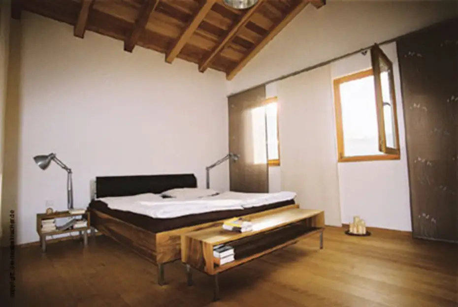 Alle Links: Schlafzimmer aus heimischen Massivholz und die komplette Einrichtung