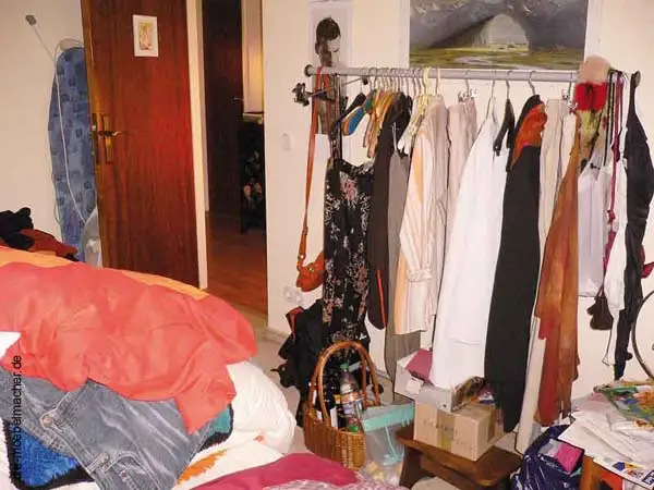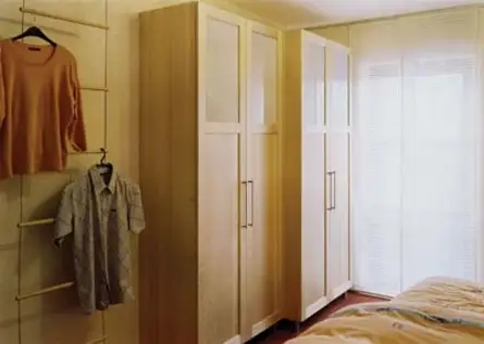 Rückansicht des Schrankes: geschickte Nutzung als begehbarer Kleiderschrank