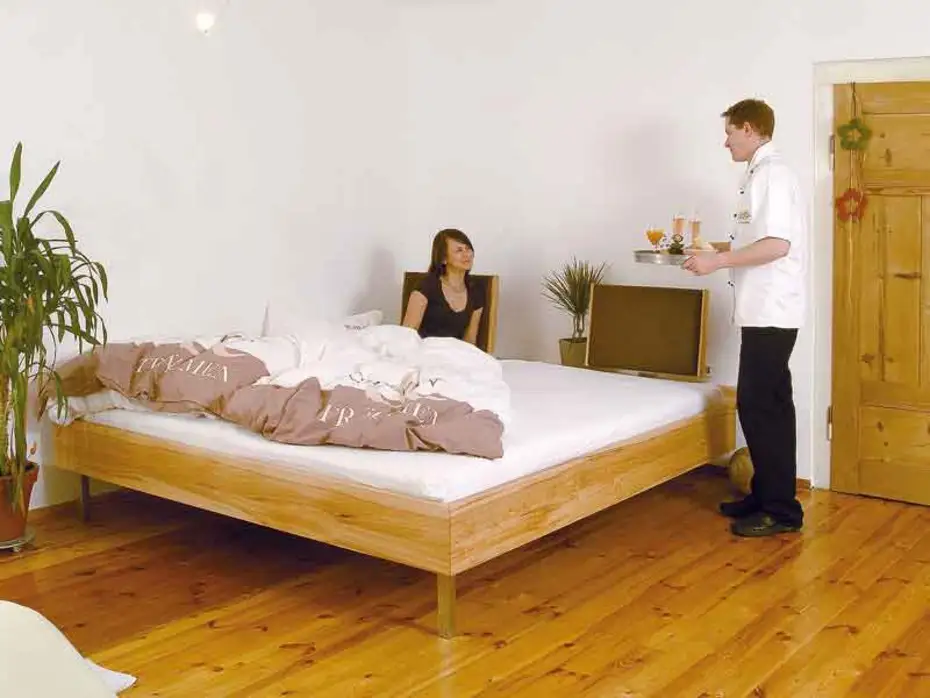 Frühstück im Massivholzbett