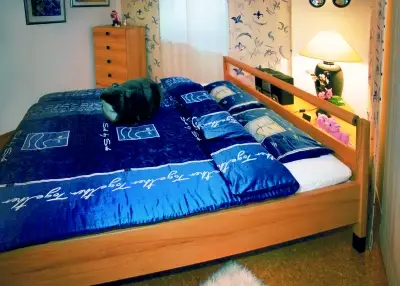 Das Bett von Thomas Kraus und Sabine Neuper hat große Rundungen und - gleich nach einer 90-Grad-Drehung - das Nachtkästchen dann doch an der richtigen Stelle. Die runden Beine sind ganz außen.