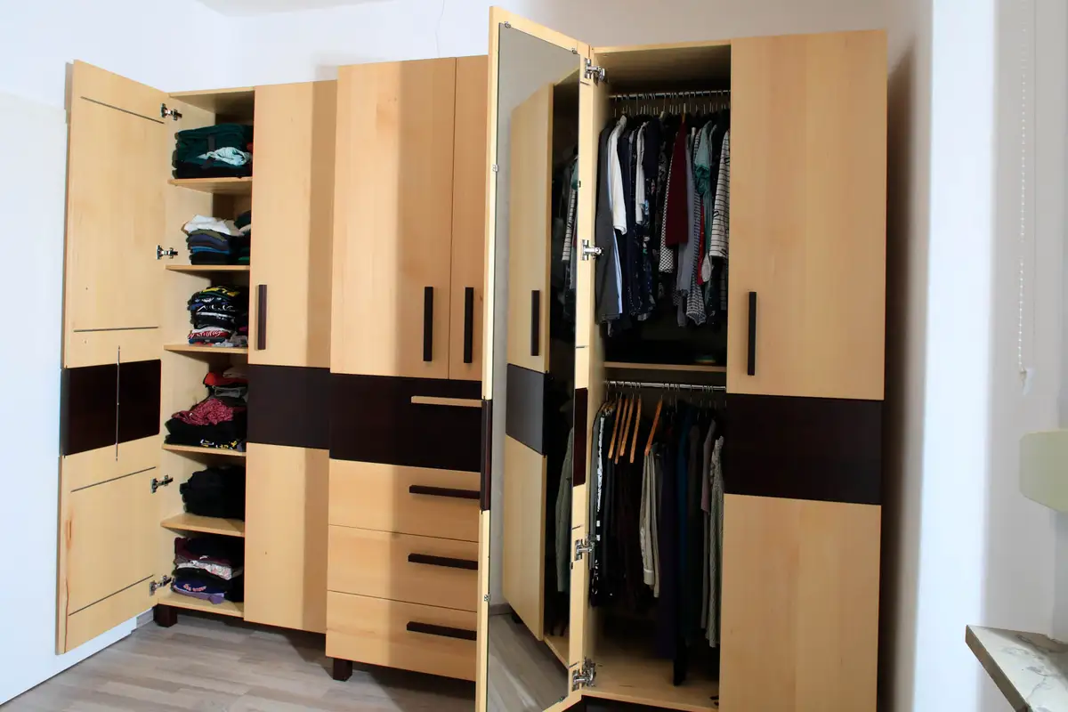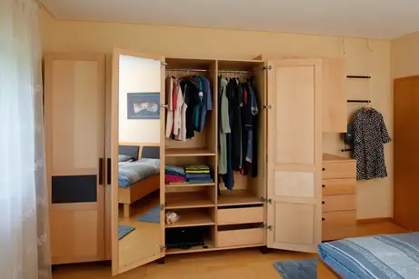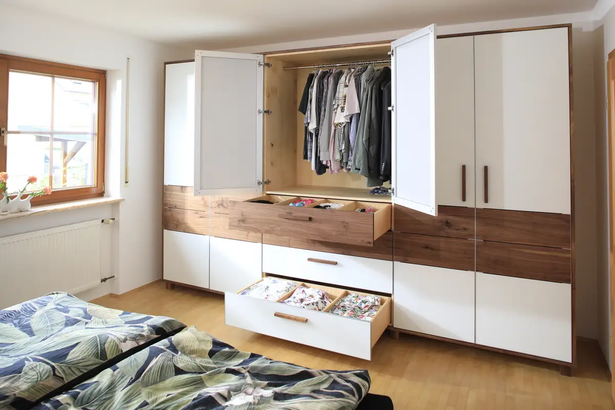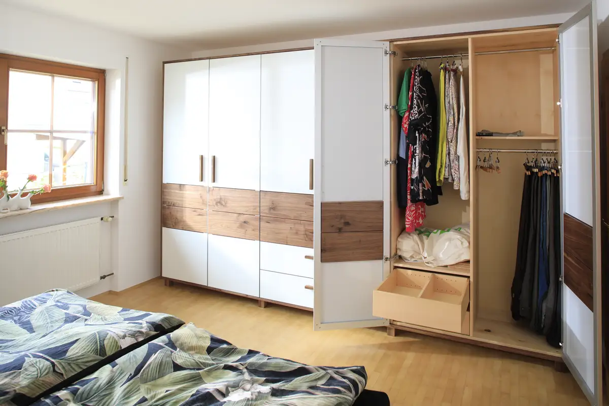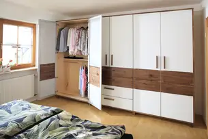 Die Türen lassen sich auf 150 Grad öffnen, man hat also selbst in beengten Schlafzimmern genügend Platz zwischen Bett und Schrank