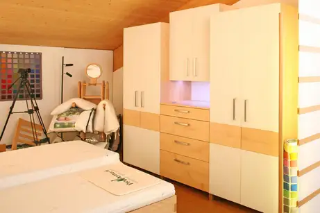 Als sich andere Küchenkunden gerade für unser "altes" Ausstellungsschlafzimmer entschieden, kamen wir bei der Besprechung von Küchenergänzungsteilen für die Speisekammer von Familie Mader auf deren Schlafzimmer zu sprechen und wir boten einen Ausstellungspreis an, falls sie uns ihr Schlafzimmer ein Jahr für die Ausstellung ausleihen würden.