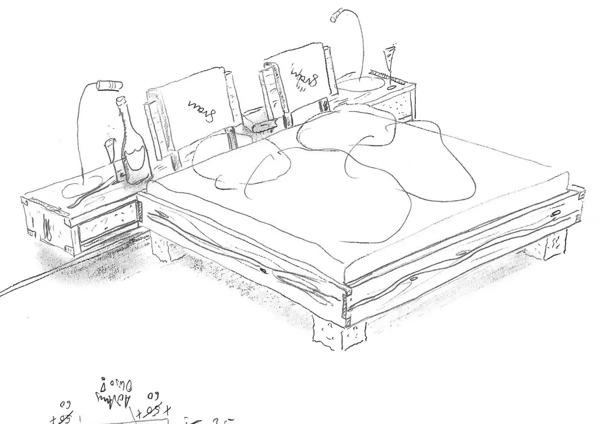 Beim gemeinsamen Entwerfen entstehen schon während des Gesprächs die ersten Skribbels mit Bleistift auf Papier, anhand derer man sich sein Bett schon gut vorstellen und weiter modifizieren kann. Später wird dann die Fertigungszeichnung erstellt, die man sorgfältig studieren sollte, um Missverständnisse zu vermeiden.