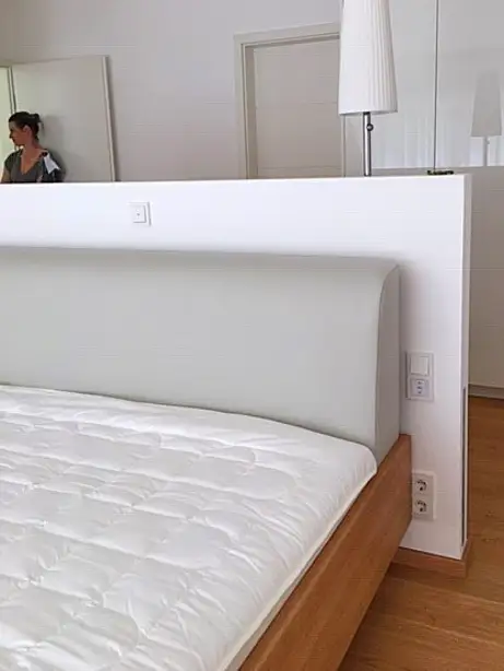Die ganz klassische Formgebung der "Bettumrandung" an Architektur und Möbel angepasst