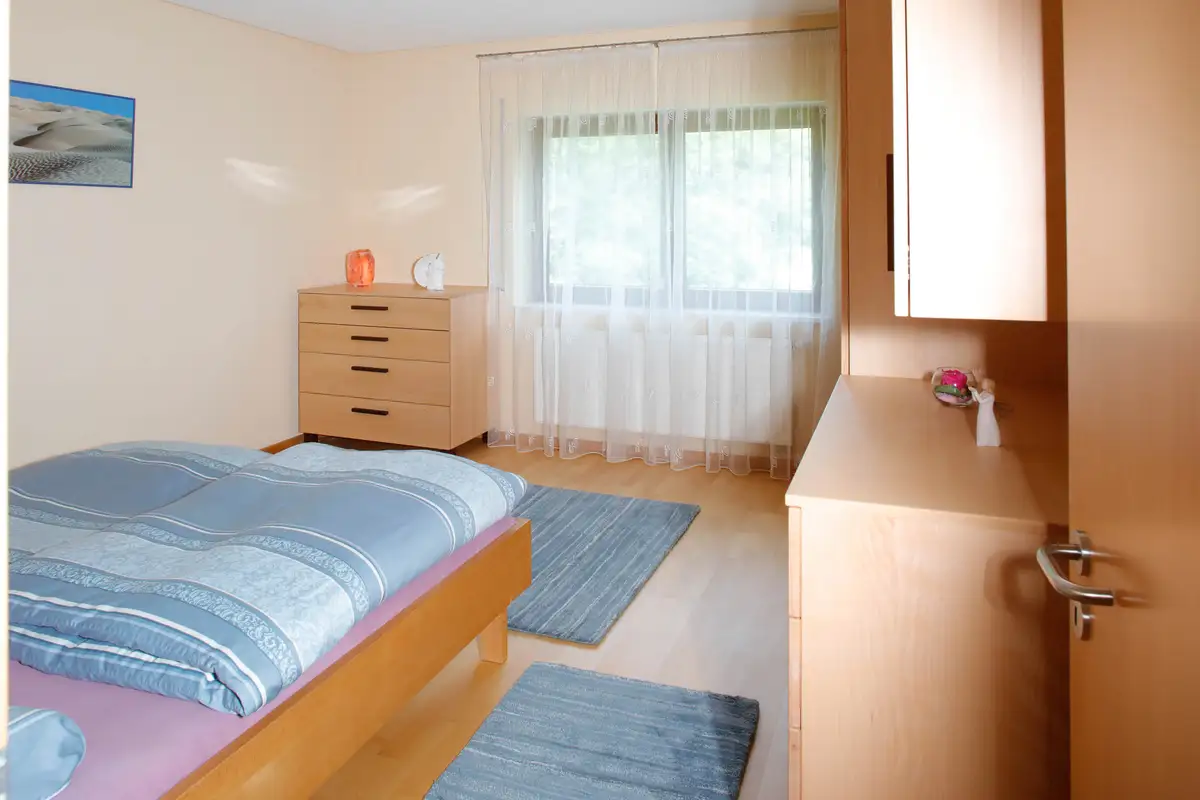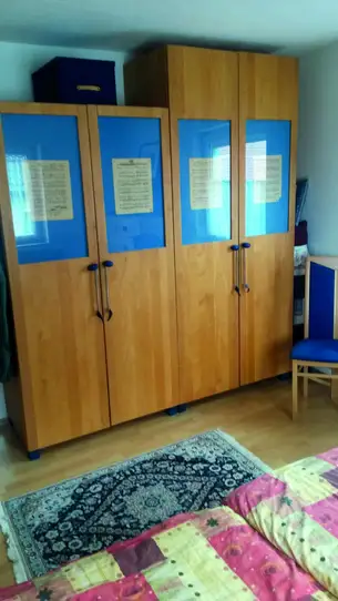 Ein ähnlicher Schrank steht auch noch gegenüber des Bettes