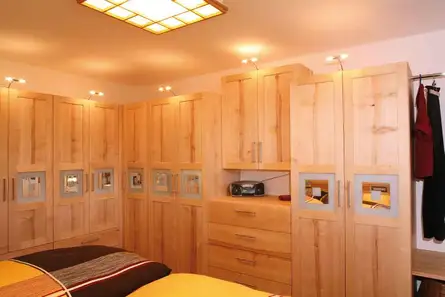 Alle Links: Schlafzimmer aus heimischen Massivholz und die komplette Einrichtung