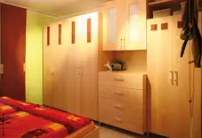 Das Kopfteil des Bettes ist gleichzeitig die Rückwand des Schrankes