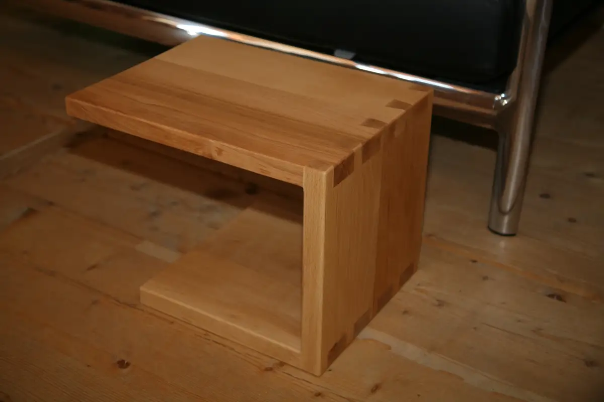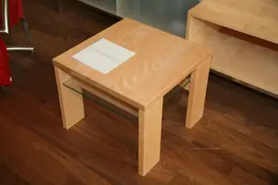 Couchtisch mit Öfelchen in Thermobuche mit gezinkten Kanteverbindungen (Fingerzinken)