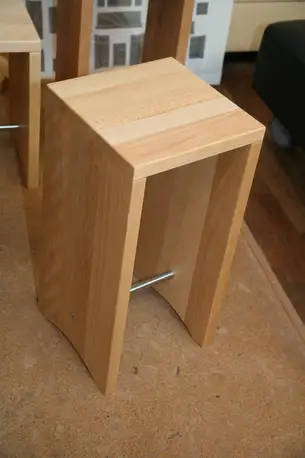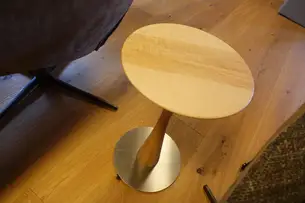 Gezinktes U aus Thermobuche als Beistelltisch mit dem Symphony-Relaxsesselvon Jori von