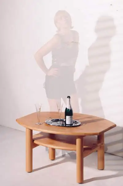 Couchtisch mit Dekoschublade, fotografiert mit der Fachkamera und unseren Auszubildenden (1999) Sabine und Barbara