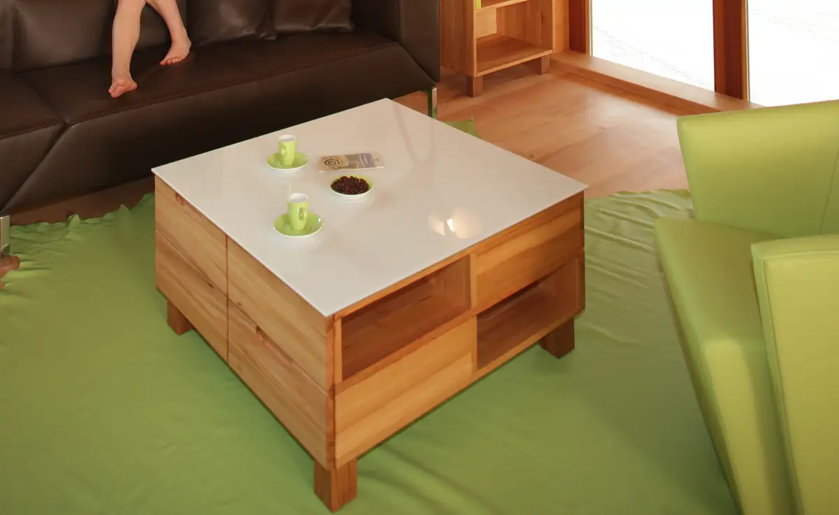 - Der Couchtisch sollte ganz auf Ihre Wünsche abgestimmt sein. Die natürliche Schönheit des Massivholzes, die Maserung und Ihre von uns verwirklichten Gestaltungswünsche sind Ihr ganz persönliche Highlight im Wohnzimmer