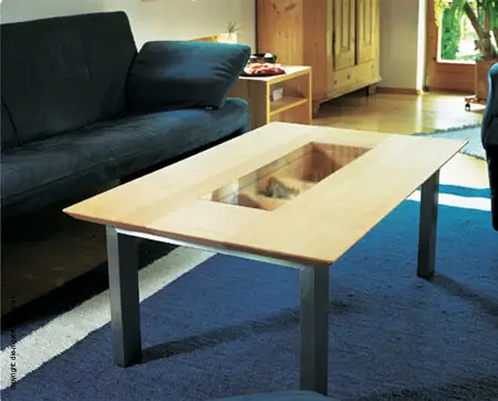 Couchtisch mit Flamme in Thermobuche