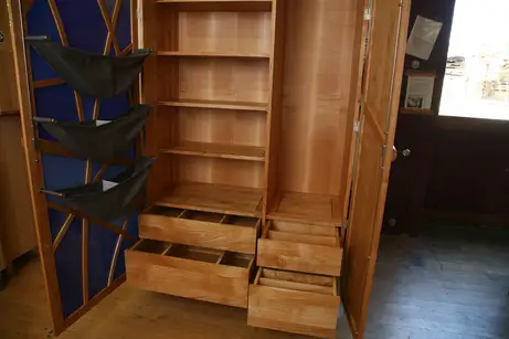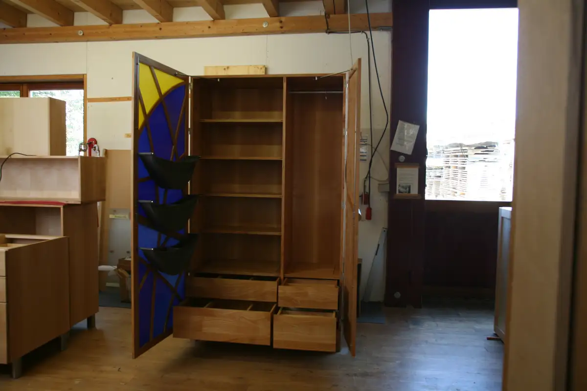 Ein wunderbares Beispiel für ein Möbel, das mit viel Liebe entworfen und in Kirschbaum verwirklicht wurde. Das Meisterinnenstück unserer Mitarbeiterin Sophia Wagner zeigt, dass man Fronten, Griffe, Füße und die Inneneinrichtung auch ganz neu denken kann. Handgemachtes Glas, frei geformte Griffleisten, raffinierte Innentaschen. Lassen Sie sich von den vielen spannenden Details inspirieren, gewöhnliche Möbel gibt es wirklich schon zu viele.