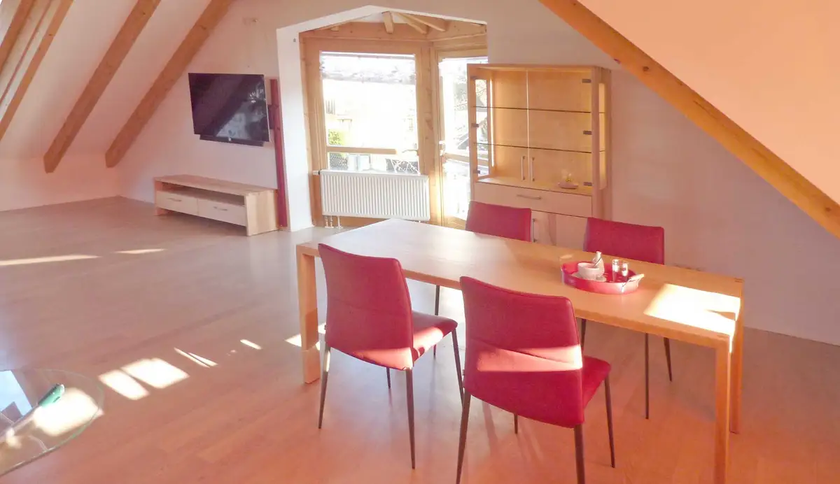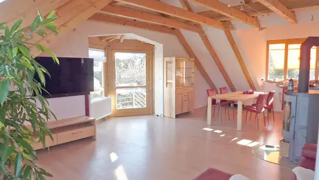 Massivholzwohnzimmer in Esche in der Dachschräge mit Simona