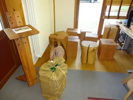 Dieses Wohnzimmer aus fränkischer Elsbeere verbrachte einige Jahre in unserer Ausstellung, wo wir es Marlene und Jule aus der Nachbarschaft fotografierten. Jetzt steht es in seiner neuen Heimat in Brixen / Südtirol (siehe letztes Foto).