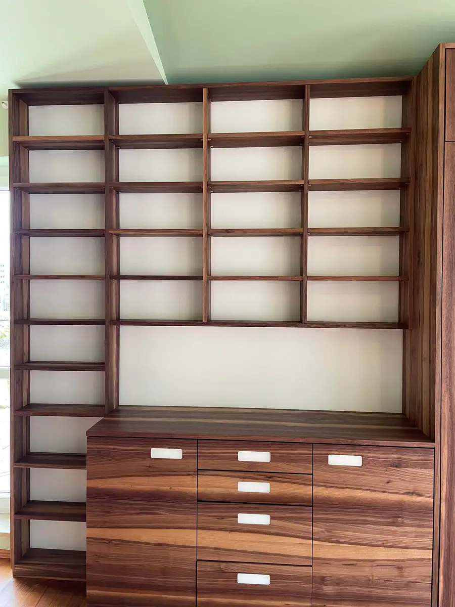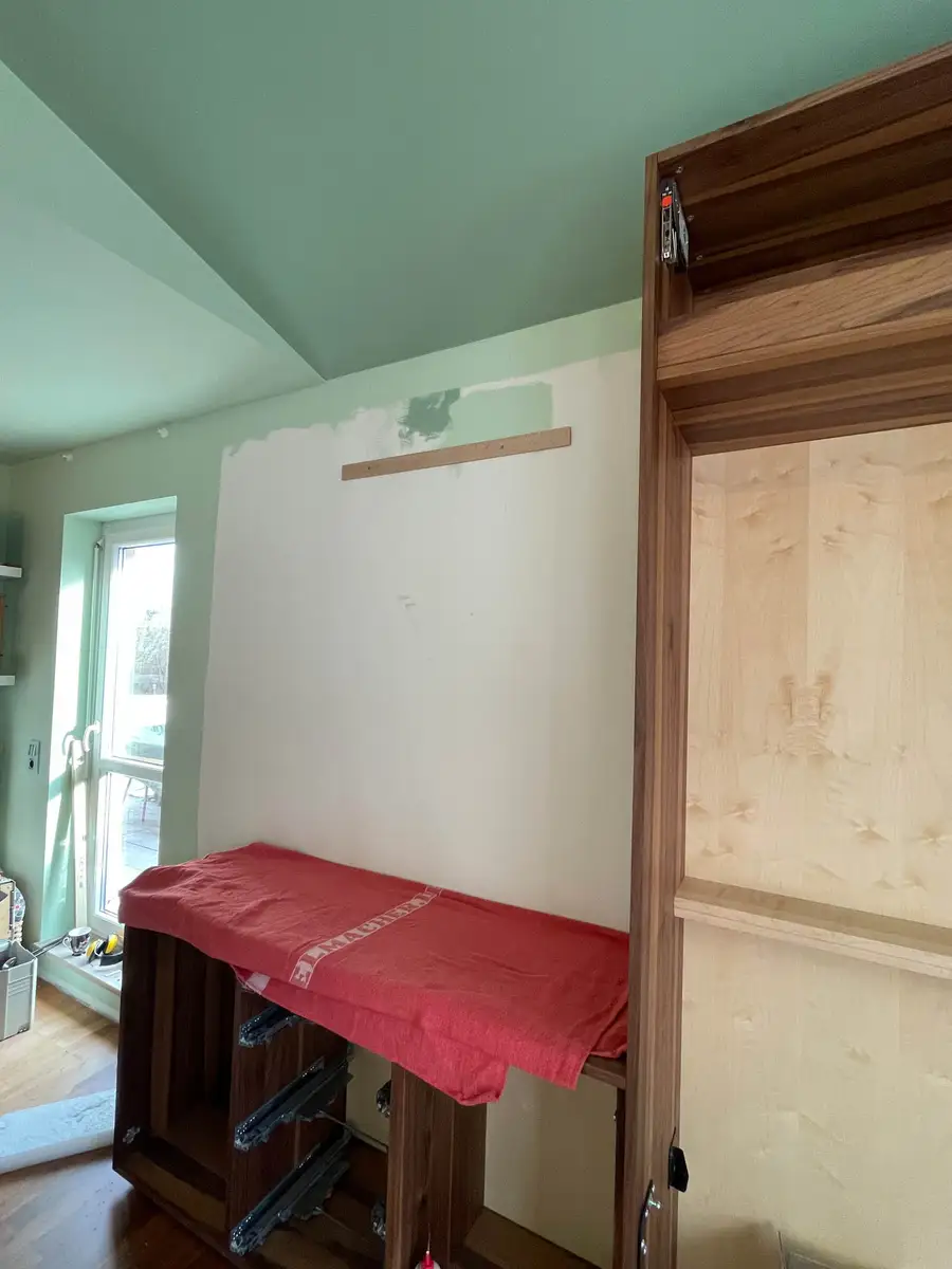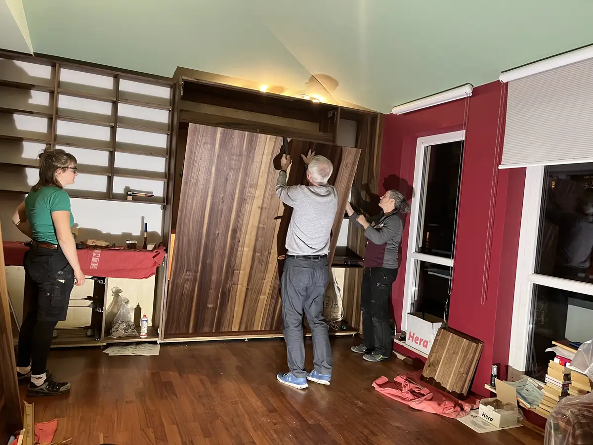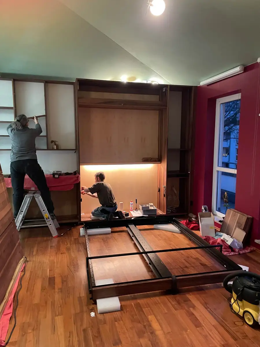 Nachdem die Montagearbeiten abgeschlossen sind und wir nun im Original das Bücherregal mit dem integrierten Wandbett betrachten können, wollten wir uns für die sehr gute Zusammenarbeit mit Ihnen und Ihrem Team bedanken. Wir sind begeistert von dem Ergebnis (siehe Bilder), von der Schönheit und Maserung des Holzes, der Qualität und Ausführung der Handwerkskunst und der professionellen Montage.