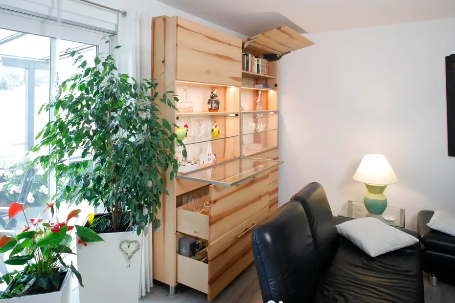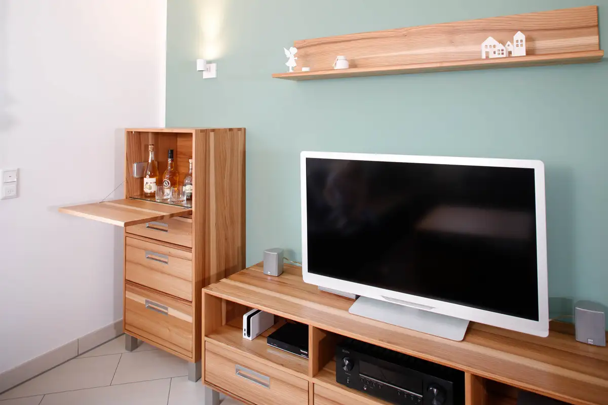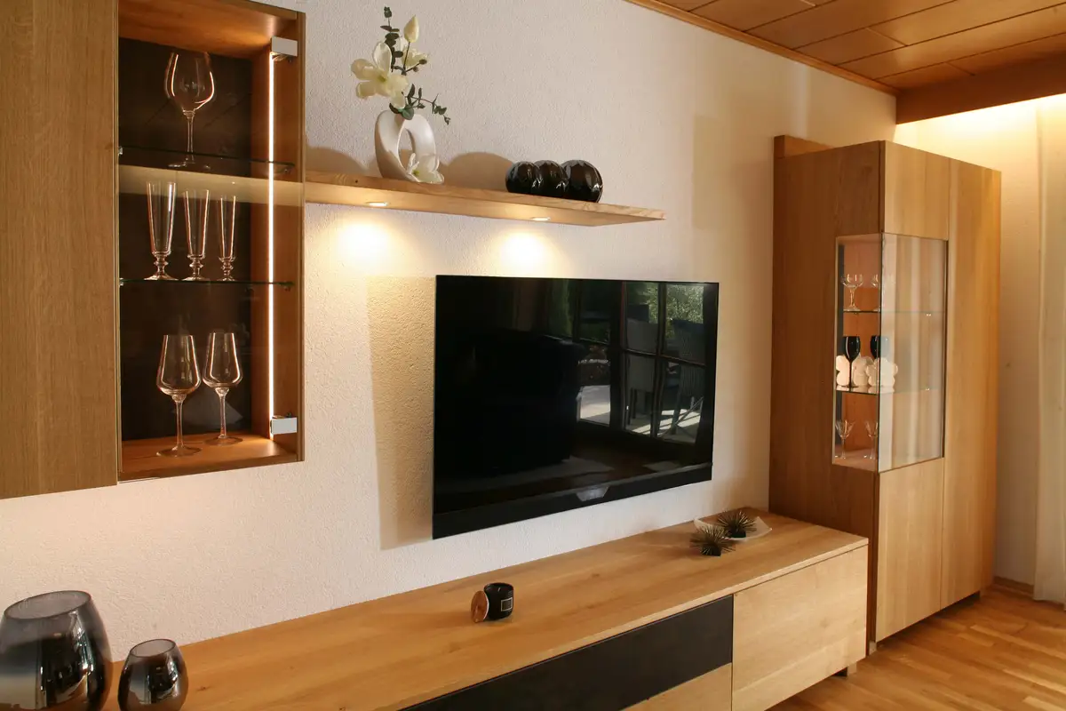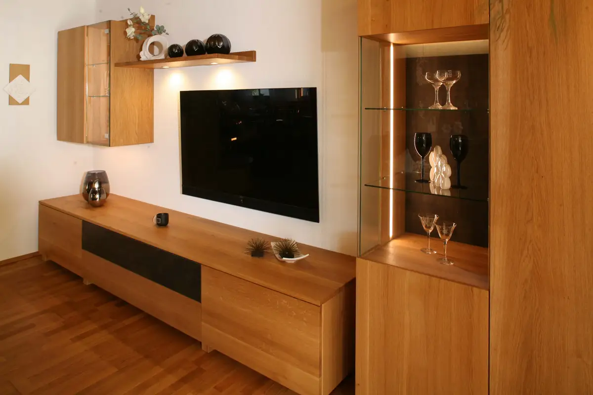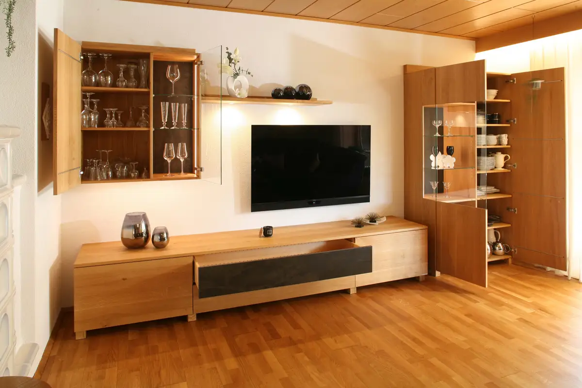Der Verlust der gewohnten Schrankwände zugunsten des überdimensionierten Fernsehers ist nicht leicht zu verkraften, aber die ein oder andere Vase könnte ja wirklich im Keller auf ihre Auferstehung warten und den Platz frei machen für einen weniger überlasteten Wohnraum. Es gibt auch Massivholzmöbel, die den Fernseher elegant verschwinden lassen und wenn Ihnen Trends total egal sind, verwirklichen wir Ihre persönlichen Wünsche: sogar eine Schrankwand in schön!