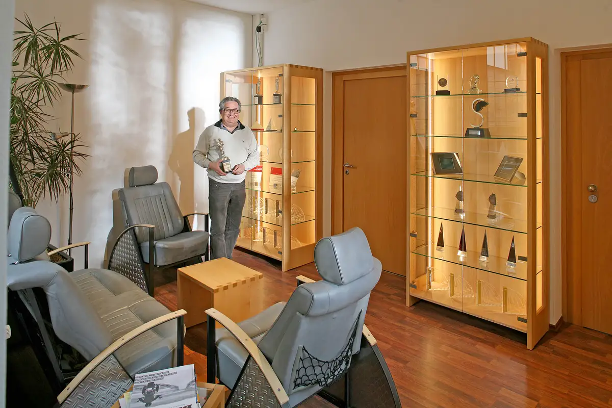Martin Feldmann von Feldmann-Media präsentiert die vielen Preise seiner Filmproduktionen in unseren Vitrinen in der Hall of Fame