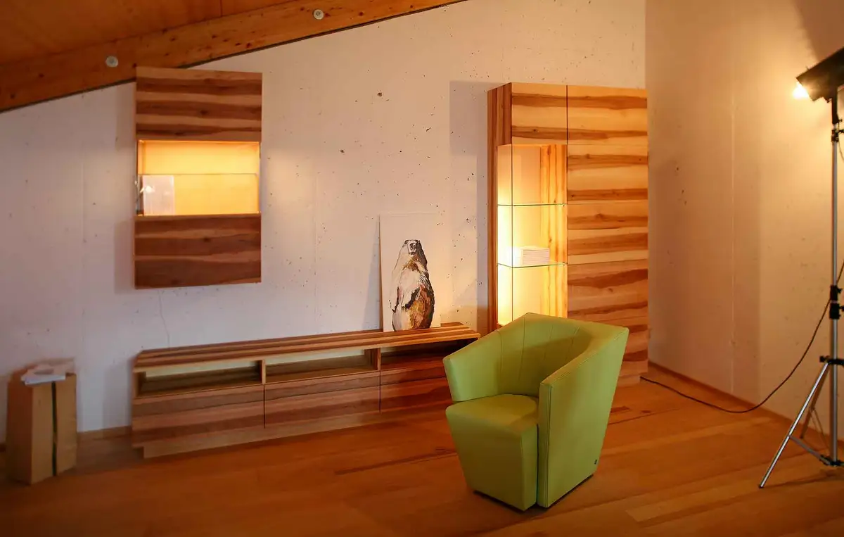 Alle Links: Wohnzimmer aus heimischem Massivholz