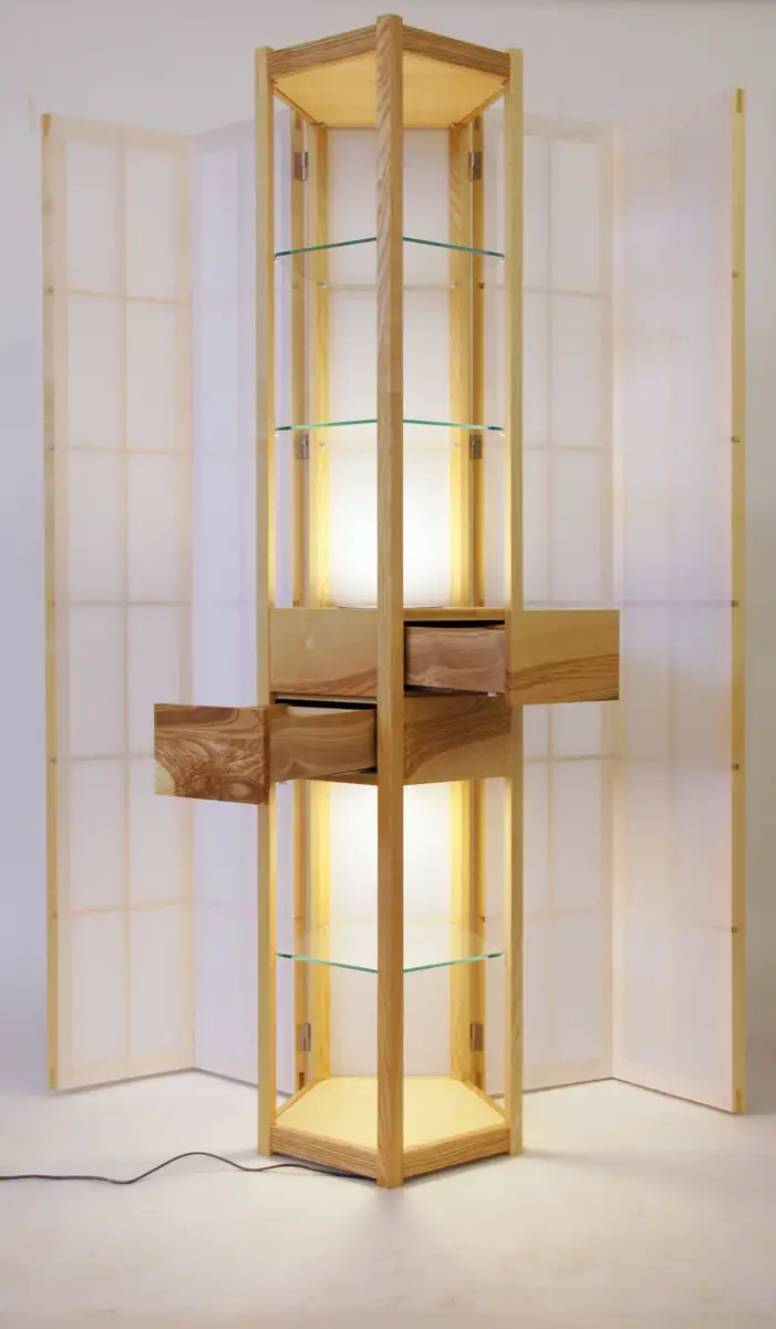 Vitrinenschrank mit Rückwand aus Keramik und drei Innenschüben für Besteck