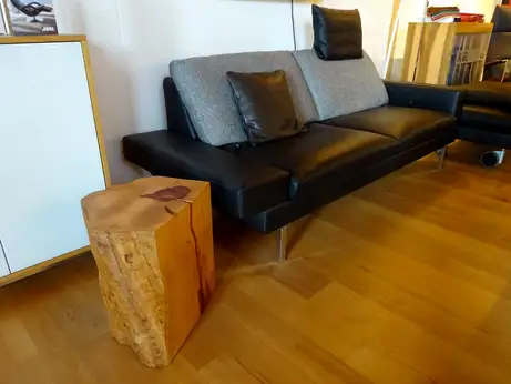 Einem oberpfälzer Tierarzt lieferten wir das Elsbeerenwohnzimmer nach Brixen in Südtirol, wo jetzt beide ihren Ruhsitz genießen. Man erkennt das typische Nachdunkeln der Elsbeere