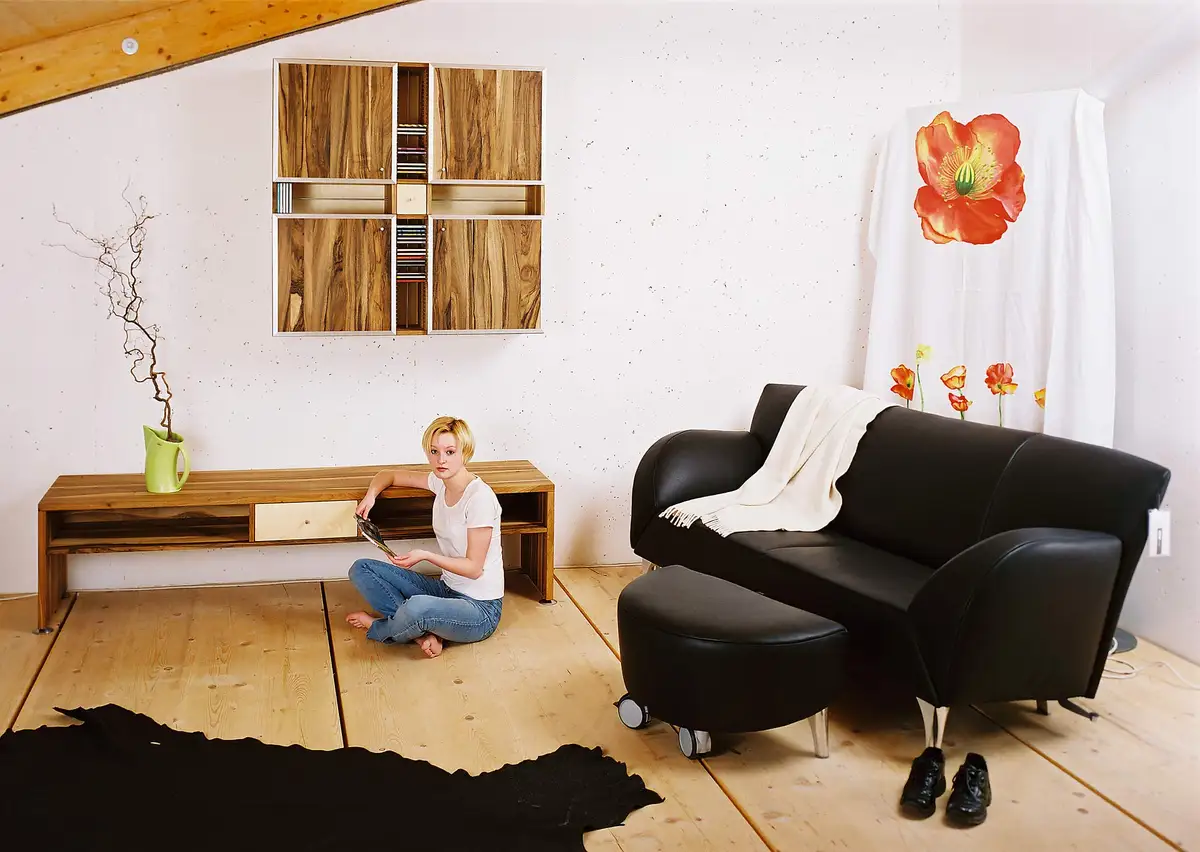 Denn an der gleichen Wand in unserer Ausstellung stand vor 18 Jahren schon ein Wohnzimmer, dass wir mit Ihr fotografiert haben und sie kam tags darauf mit passender Frisur, passender Jeans und T-Shirt und ich wusste nach den ersten Fotos wieder, warum das Fotografieren mit Ihr damals immer so perfekt war. Ganz lieben Dank dafür. Bei Ihrem 20-jährigen Möbelmacher-Jubiläum werden wir die Fotos wieder ausgraben, aber für den Moment hat sie unser Wohnzimmer und unsere Firma erneut perfekt in Szene gesetzt.