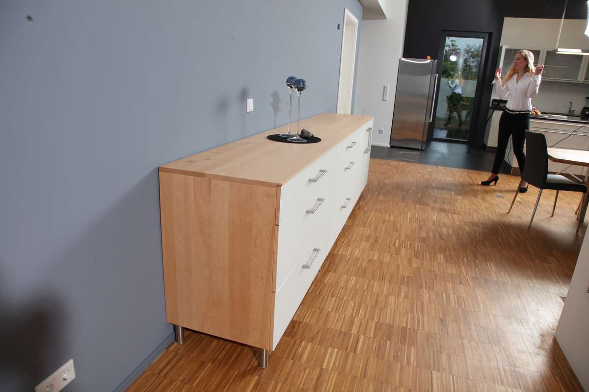Stefan suchte die perfekte Umgebung für seine Hifi- und TV-Anlage, Heike entdeckt ihre Kompetenz zum Mixen wieder. Und trotz aller 234 technischen Anforderungen sollen es schöne und schlichte Möbel werden. Das Fertigen solch detailverliebter Möbel im „sorgfältigem Minimalismus” (Ulrich Grober) ist nicht ganz unaufwändig, für das gemeinsame Entwickeln derselben helfen Kompetenz, Einfühlungsvermögen und Geduld, Geduld, Geduld, ...