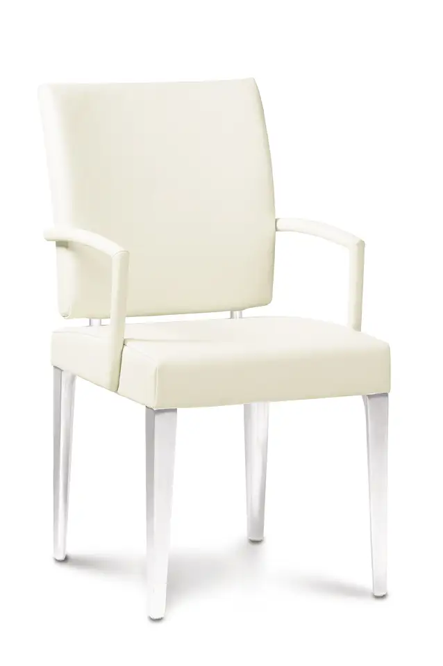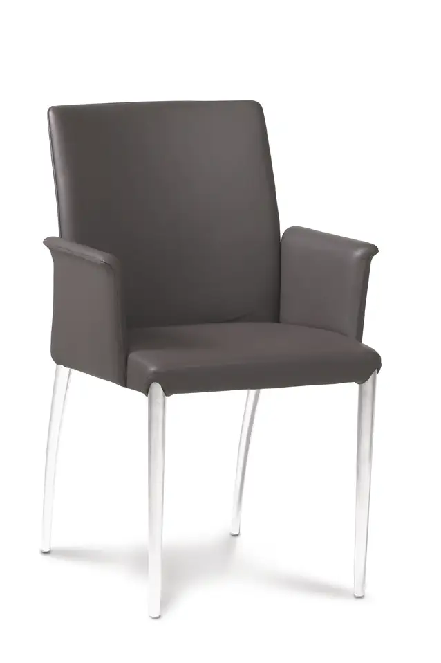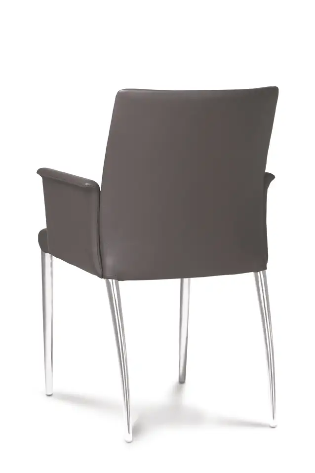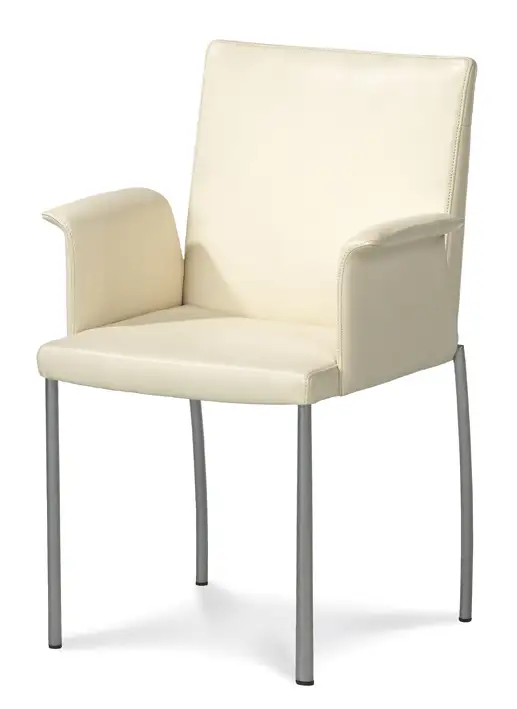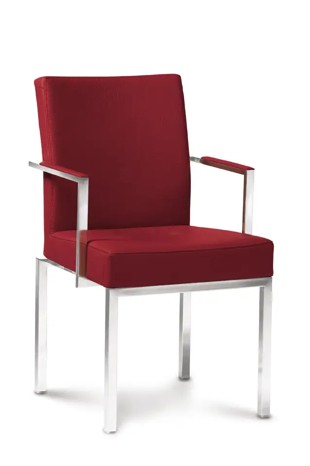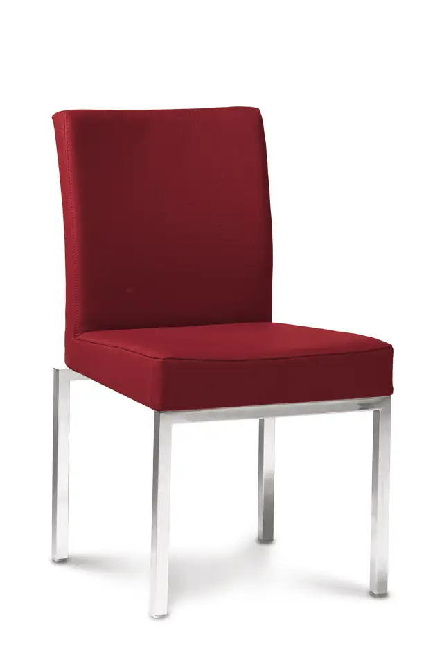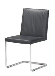 Der sehr geradlinige Singolo mit den Rahmenförmigen Beinen hat eine besonders komfortabel gepolsterte Sitzfläche und einen flexiblen Rücken.